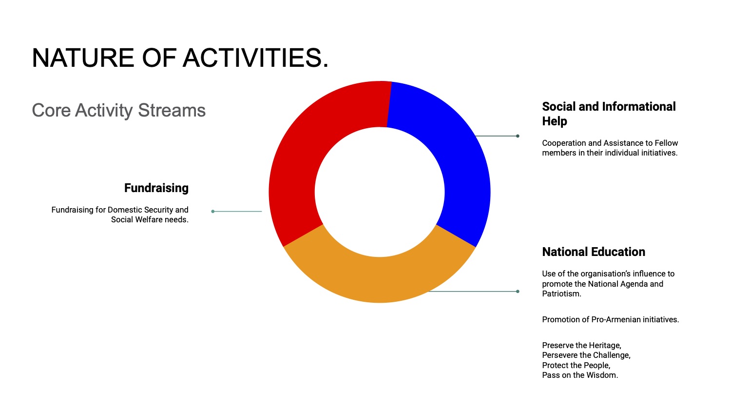 In this section, you’d able to consult Presentations that shed the light on our philosophy, as well as, our commitment to serve the best interests of Armenians.